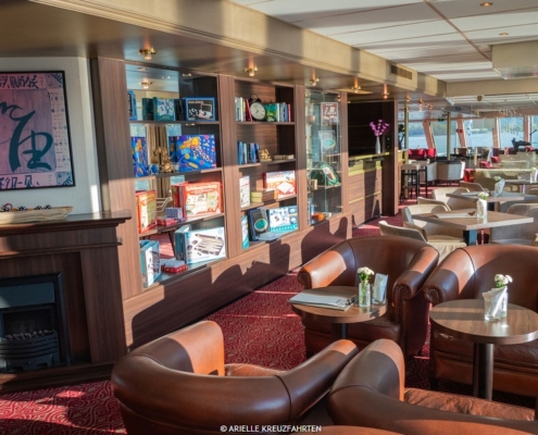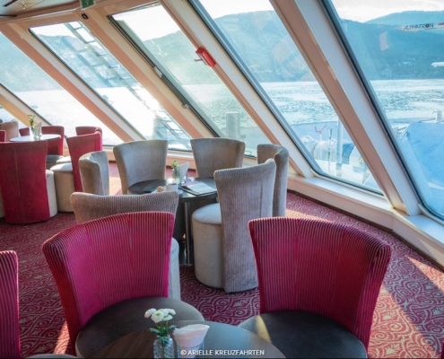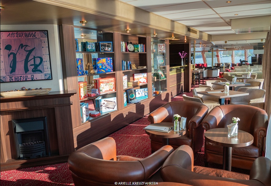 Elegante Räumlichkeiten auf 4 Passagierdecks verteilt. Stilvoll eingerichtete Panorama-Lounge mit Bar, Panorama-Restaurant , elegante Bar im Bug mit Außenterrasse, je nach Route auch mit à la carte-Restaurant. Atrium-Lobby mit Rezeption, kleine Boutique und Ausflugsbüro, Lift, Internet-Ecke, Sauna, Dampfbad, kleiner Fitnessbereich, Friseur, Wäscheservice, großflächiges Sonnendeck mit kleinem Pool, Liegestühle, Sitzgruppen, Schattenplätze und Sitzterrasse vorne sowie Barservice und kleine Aussichtsterrasse am Bug, WLAN (kostenpflichtig, je nach Fahrgebiet kann es ggf. zu Ausfällen/Störungen kommen).